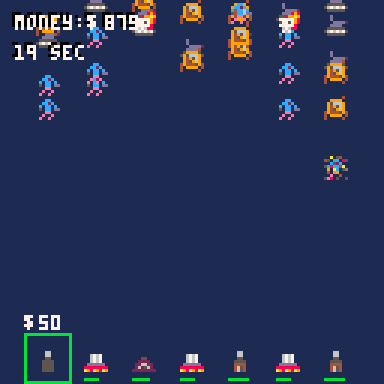 - Gatling - Hits 3 lanes at once with good damage but only hits the enemy in front and is expensive. Costs $200 to build.
